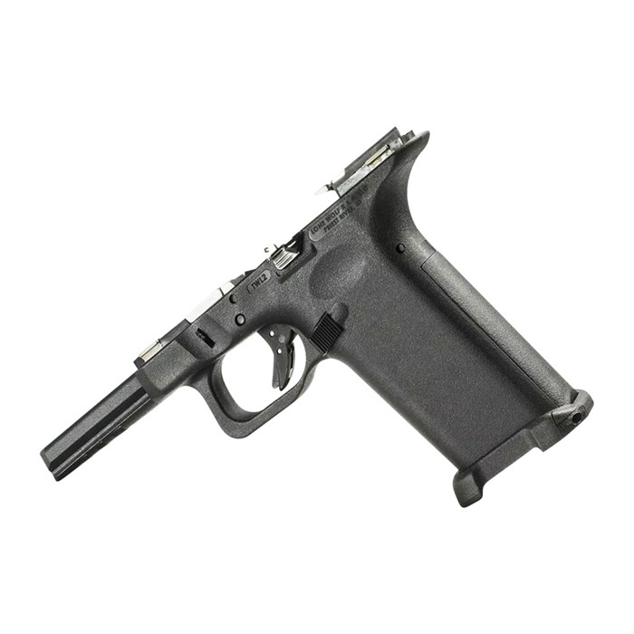 When Lone Wolf first launched the original Timberwolf frame, one of the first questions was “when will it be available in .45 ACP or 10mm?” That time is now, because they’ve revamped and upgraded the design to bring you the Timberwolf Large. The first thing you’ll notice is that the TWL fits in your hand like a much smaller pistol - in fact we measured the grip circumference of the most popular factory 9mm service pistol, and the Timberwolf Large was only .007" larger. That’s only the width of a couple of human hairs, giving you real .45 ACP or 10mm firepower in a 9mm sized package. The grip length accept G20/G21 Gen3 and Gen4 slides, as well as G40 slides. The TWL uses G20/G21 magazines. When using a Gen4 slide you simply remove the installed adapter in the dust cover area of the frame. Using Gen3 slides you leave the adapter in place to fill the gap between the slide and dust cover. The Timberwolf Large is available in multiple configurations, all of which include the dust cover adapter, removable magazine well, and interchangeable backstraps. (TWL & TWF backstraps are interchangeable) No matter what your shooting goal is, the Timberwolf Large will fit your needs. Whether you want a gun for backwoods carry, a longslide for hunting, a slim and easy to carry .45 ACP for personal protection, or just want to build the coolest gun at the range, the Timberwolf Large can make your dreams come true. Years in the making, the Timberwolf Large is here. The frame game will never be the same. Assembled frames come with the following parts installed. If purchasing a bare frame with parts kit the same parts are used but not installed, if you are using your own parts please note most parts are GEN3 parts except the magazine catch and trigger housing which requires a GEN4 style part. Part Name TWL LWD Extended Slide Stop 3 Pin LWD-7496 LWD Ext Slide Lock Lever Black LWD-ESLL LWD Connector 3.5 lb LWD-342 LWD Trigger Spring 6 lb LWD-350-6 LWD Trigger Pin LWD-420 LWD Locking Block Pin LWD-4368 LWD Slide Lock Spring LWD-5446 LWD Locking Block LWD-1447 LWD Trigger Housing Pin (Black) LWD-427B LWD Universal Trigger Housing LWD-UTH-45 LWD Mag Catch Spring LWD-280 LWD Magazine Catch Reversible (Gen 4) LWD-8795 LWD Trigger Bar LWD-4417 LWD Polymer Trigger Shoe, Black (Standard, non adjustable) LWD-PolyShoe *When swapping mag catch directions you must REMOVE the magazine catch spring, do NOT just pry the spring around the mag catch, frame damage will occur. *Not compatible with G41 slides *Does not work with SiderLock trigger safeties