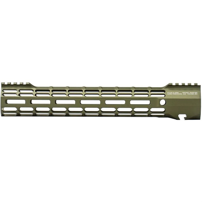 The ATLAS S-ONE is the newest addition to the Aero Precision Handguard lineup. Machined from 6061-T6 Aluminum, the S-ONE line of handguards are designed with size and weight in mind, providing the perfect handguard for your lightweight build. Aero's proprietary ATLAS attachment system is a durable and dependable mounting platform, maintaining a slim profile while still providing the strength and stability customers have grown to love from Aero Precision handguards. ATLAS The new Aero Taper Lock Attachment System (ATLAS) is both functional and aesthetically pleasing. It features 2 mirrored tapered locking nuts that provide evenly distributed clamping pressure across a custom engineered barrel nut with use of a turnbuckle screw. A ratcheting detent further secures the design while providing positive registration during installation. By design, the even pressure of the ATLAS system avoids distortion of the handguard often seen with current applications during installation. All hardware mounting parts are included with the purchase of an ATLAS Handguard. LIGHTWEIGHT BY DESIGN M-LOK Handguard Weights: 12.7" - 7.66 oz / 15" - 8.71 oz Aero Precision rail lengths measure from end to end. This is the point of contact at the receiver to the end of the last picatinny slot at the muzzle. Mounting Hardware Weight: 4.72 oz (same across all S-ONE Handguard options) FEATURES: Front and rear picatinny rail Eliminated center of top rail for weight reduction Indexing grooves in 12:00 position for positive grip control Quick disconnect sling socket at the 3, 6 and 9 o'clock positions Compatible with low profile gas blocks 1.3" Inside diameter 1.5" Outside diameter Compatible with mil-spec AR15 upper receivers and barrels NOT Compatible with M5E1 Enhanced Upper Receivers SPECS Made In America? Yes Platform M5 Series ATLAS Attachment Type M-LOK Material Machined from 6061-T6 aluminum M-LOK Handguard Weights: 12.7" - 7.66 oz / 15" - 8.71 oz Other Mounting Hardware Weight: 4.72 oz ATLAS Handguards are designed to match seamlessly with Aero's M5E1 Threaded Upper Receivers. However, they may not be compatible with billet upper receivers due to indexing tabs. Save when you buy them as a combo. PLEASE NOTE: These handguards do not come with a wrench. A standard armorers wrench will work with all M5 ATLAS Handguards.