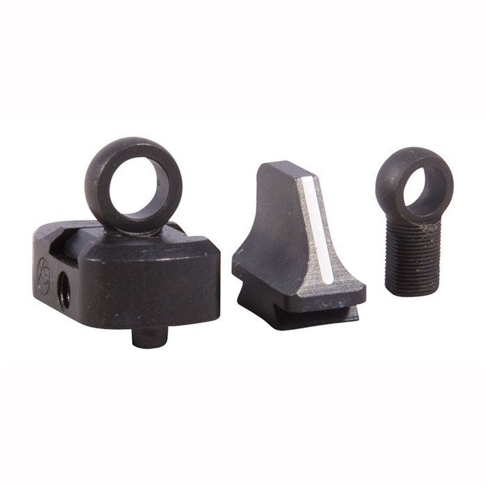 Easy-to-see post front and ghost-ring rear get you on target fast for brush hunting and action shooting. All steel construction, front/rear sets provide the correct front sight for each model, eliminating the guess work of choosing sights. Easy-to-install, fully machined to fit existing rear scope base and front sight holes/dovetails. Windage and elevation adjustable with dual set screws. Modified post front sight with vertical white line insert provides excellent target contrast, is quick to pick up in all light conditions. Includes .191" and .230" I.D. apertures.