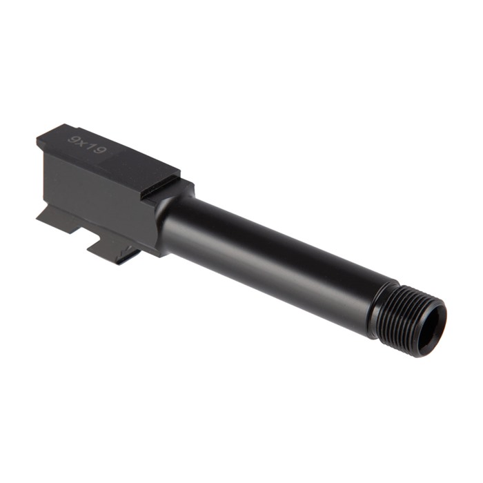 Il barile è lavorato da acciaio inossidabile 416R indurito a dimensioni precise per una serratura stretta e una lunga durata. L'installazione dovrebbe essere un'operazione semplice e diretta sulla maggior parte delle armi. La finitura Black Nitride extra dura resiste all'usura superficiale e ferma sul nascere qualsiasi corrosione che potrebbe cercare di sfidare l'acciaio inossidabile. Davanti alla camera 9mm Luger (9x19mm) si trova un'anima con rigatura standard, 1-10" a destra, con 6 scanalature compatibili con munizioni "da allenamento" con proiettili non rivestiti.