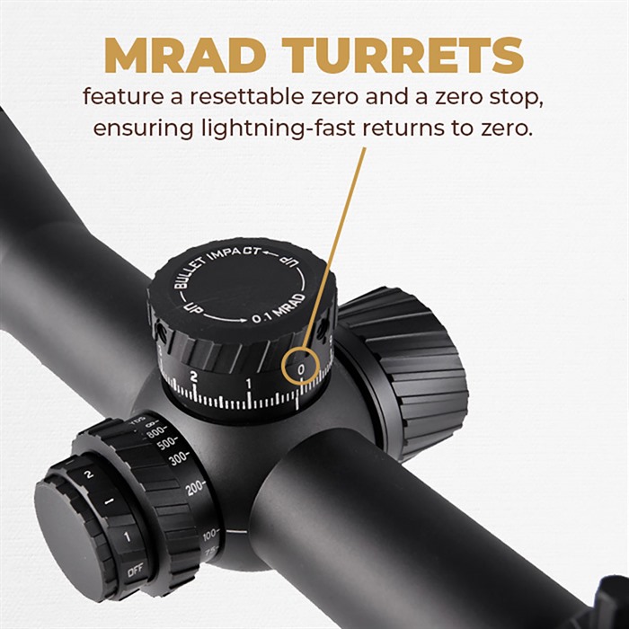 - Reticolo e torrette in MRAD per regolazioni rapide e facili.