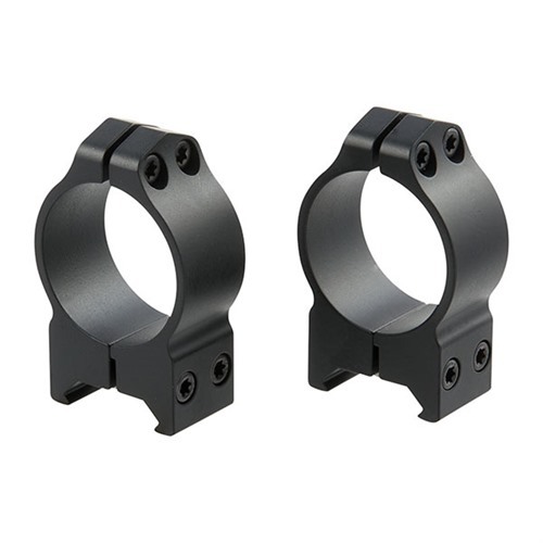 Gli Anelli Fissi Maxima sono disponibili in una finitura resistente in vernice DuPont, sia lucida che opaca nera, oltre a una finitura in nichel argentato elettroless. Gli anelli per ottiche Maxima di Warne sono progettati per adattarsi alle basi Warne, così come a tutte le basi e rotaie stile Weaver e Mil-Spec Picatinny.