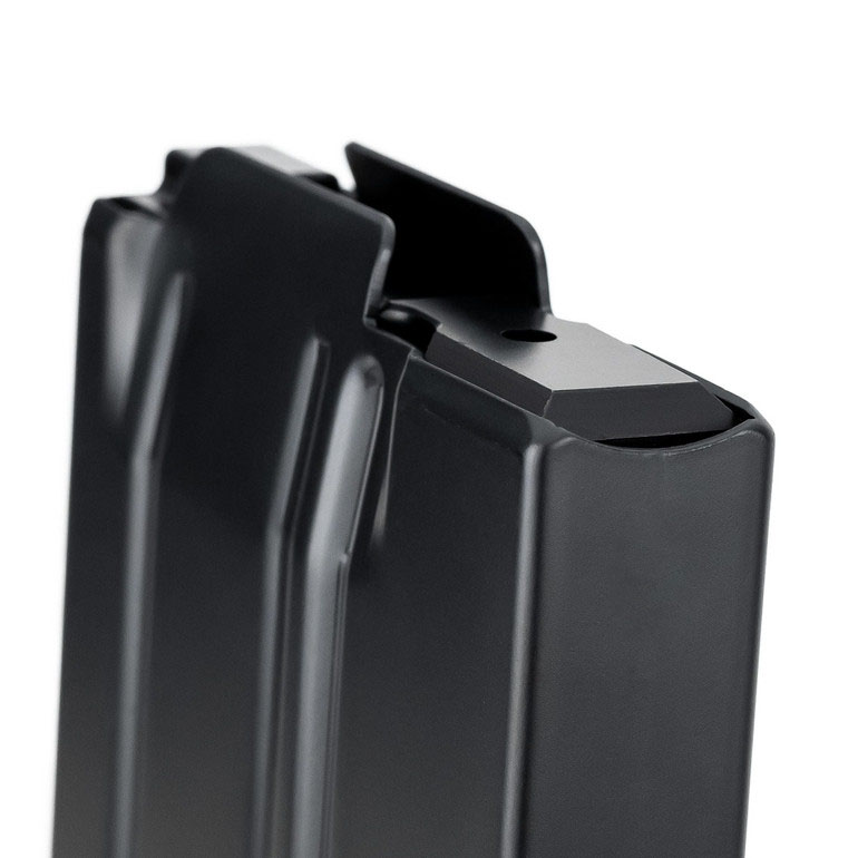 I caricatori da 10 colpi MDT sono circa ¾” più corti in altezza rispetto ai caricatori standard AICS da 10 colpi, grazie al design unico di transizione da Double Stack a Single Feed (DSSF), che consente cambi di caricatore più facili durante il tiro in posizione prona.