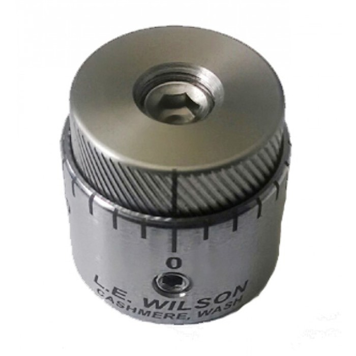 Il MICRO-ADJUSTABLE BULLET SEATER CAP di L.E. WILSON ti consente di convertire qualsiasi dies di caricamento a camera standard L.E. Wilson in un caricatore micrometrico regolabile con precisione. Semplicemente sostituisci il tappo del tuo caricatore standard con il tappo micro-regolabile di Wilson, stringi la vite di bloccaggio sul nuovo tappo e sei pronto a ottimizzare la profondità di caricamento del tuo proiettile con un'accuratezza e una ripetibilità straordinarie.