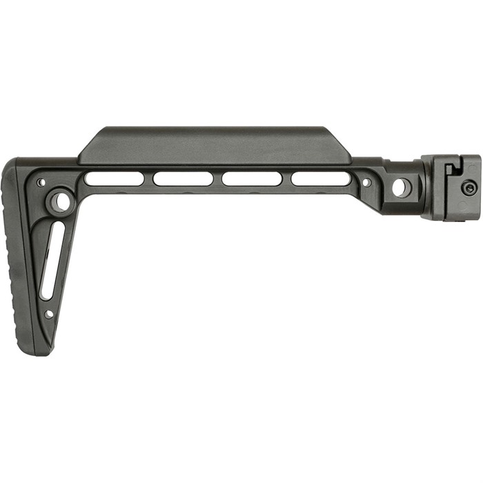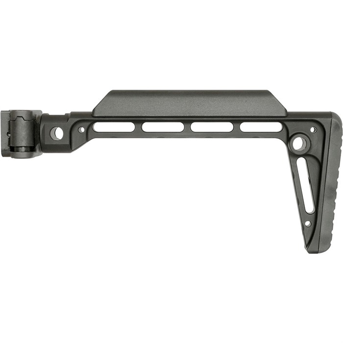 MINIMALISTIC SIDE FOLDING STOCK FEATURES: Heavy-duty side-folding mechanism constructed from 4140 heat treated steel Full-length locking lug for maximum strength Solid positive lock up in both positions Steel clamp with large surface engagement Can be configured to right or left folding Features 5 QD sling attachments Stock is made from Hard Coat Anodized 6061 Aluminum Extremely rigid design Cheek piece and butt pad made by Midwest Industries Polymer cheek piece and rubber butt pad for better comfort Adds 9.25” to overall firearm length Adds 0.75” to the length of the firearm in the folded position Complete assembly weight: 15.7 oz. Steel parts are mag phosphate finished Made in the USA Midwest Industries Lifetime Warranty It is the responsibility of the purchaser to ensure that possession and use of this item is in compliance with all relevant federal, state, and municipal laws or statutes. End user is responsible for any ATF requirements*