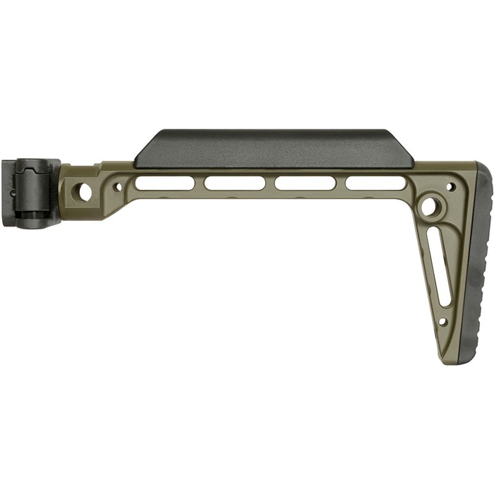 MINIMALISTIC SIDE FOLDING STOCK FEATURES: Heavy-duty side-folding mechanism constructed from 4140 heat treated steel Full-length locking lug for maximum strength Solid positive lock up in both positions Steel clamp with large surface engagement Can be configured to right or left folding Features 5 QD sling attachments Stock is made from Hard Coat Anodized 6061 Aluminum Extremely rigid design Cheek piece and butt pad made by Midwest Industries Polymer cheek piece and rubber butt pad for better comfort Adds 9.25” to overall firearm length Adds 0.75” to the length of the firearm in the folded position Complete assembly weight: 15.7 oz. Steel parts are mag phosphate finished Made in the USA Midwest Industries Lifetime Warranty It is the responsibility of the purchaser to ensure that possession and use of this item is in compliance with all relevant federal, state, and municipal laws or statutes. End user is responsible for any ATF requirements*