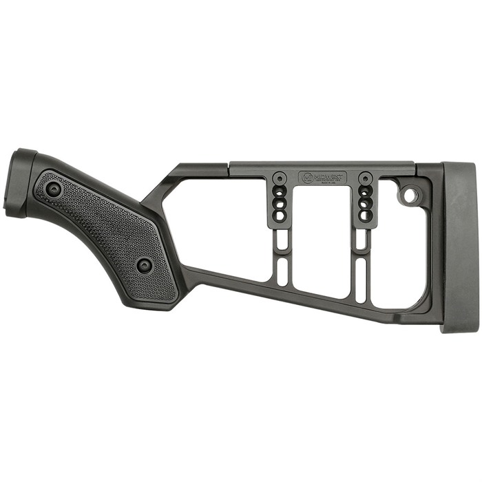 SHOTGUN STOCK FOR REMINGTON 870 FEATURES: Compatible with Remington 870 Shotguns Polymer cheek piece provides adjustability for use with iron sights, red dots, or magnified optics Cheek piece in the lowest position maintains the same height as the factory stock Maintains factory length of pull. Spacer plates are an available add-on if a longer length is needed. Ambidextrous design works for left and right-hand shooters Exclusive Midwest Industries butt pad reduces felt recoil while maintaining a secure fit in your shoulder Features several properly placed anti-rotation QD swivel sockets. Also incorporates one standard sling swivel location and stud for versatile sling placement. MI-designed grip panels give a unique look while providing ample texture in a rainy or snowy environment M-LOK® compatible slots on either side for use with MI Universal Shell Holders or M-LOK® panels for aesthetic Provides factory length of pull to fit most users Grip and stock beam made from Hard Coat Anodized 6061 Aluminum Weight of Complete Unit: 1lb 11oz Made in the USA Lifetime warranty