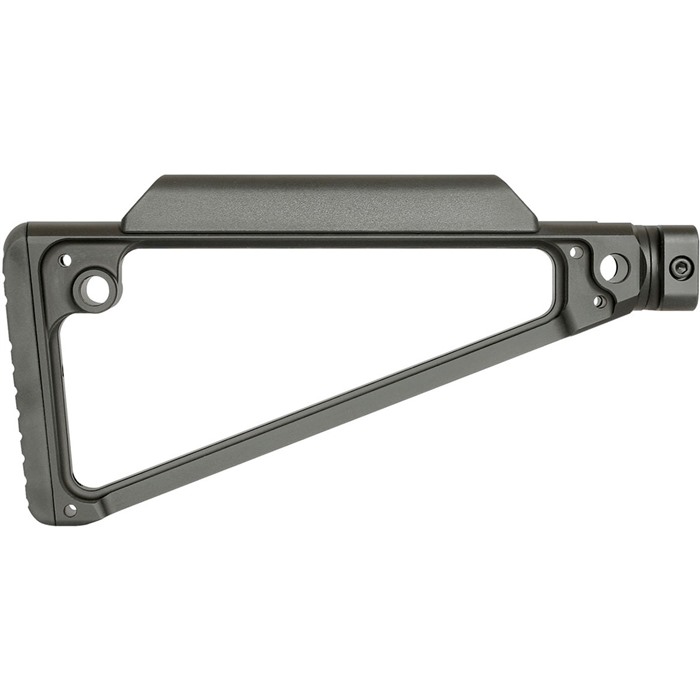 TRIANGLE FIXED STOCK FEATURES: Fixed position Features 5 QD sling attachments Stock is made from Hard Coat Anodized 6061 Aluminum Extremely rigid design Cheek piece and butt pad made by Midwest Industries Polymer cheek piece and rubber butt pad for better comfort Adds 9” to overall firearm length Complete assembly weight: 11 oz. Made in the USA Midwest Industries Lifetime Warranty It is the responsibility of the purchaser to ensure that possession and use of this item is in compliance with all relevant federal, state, and municipal laws or statutes. End user is responsible for any ATF requirements*