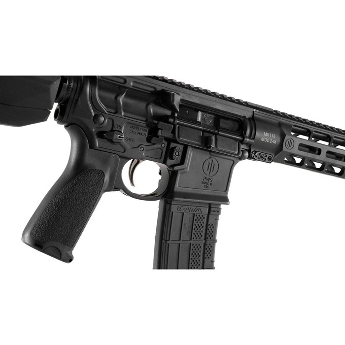 MK116 MOD 2-M 223 Wylde Semi-Auto Rifle SPECIFICATIONS: Operating System: PWS Long Stroke Piston System, 3 setting Adjustable Gas Regulator Caliber: .223 Wylde Barrel Length: 16.1” 41V50 Steel Gas System Length: Mid-Length Barrel Twist Rate: 1:8 Muzzle Velocity: 2980 fps Muzzle Device: PWS FSC 556 Upper Receiver: PWS Proprietary Piston Upper, T6 7075 Forged, Anodized Handguard: PWS PicLok™ 15.0” Handguard (1.7” width, 2.25” height) Charging Handle: Radian Raptor™ Ambidextrous Charging Handle Lower Receiver: PWS ambidextrous MK1 MOD 2-M Multi-Caliber Lower, 7075-T651 Hard coat anodize, per Mil 8625 Type lll Class 2, AR-15 Compatible Trigger: Mil-Spec Enhanced, PTFE Coated. Trigger Pull Weight: 5.5 – 6.5 lbs. Buffer Tube: PWS 1.2” Diameter Enhanced Buffer Tube with ratchet lock castle nut and end plate set with built-in QD mount Buffer: PWS Enhanced H2 Steel Body Buffer Furniture: Bravo Company USA® Buttstock and Pistol Grip