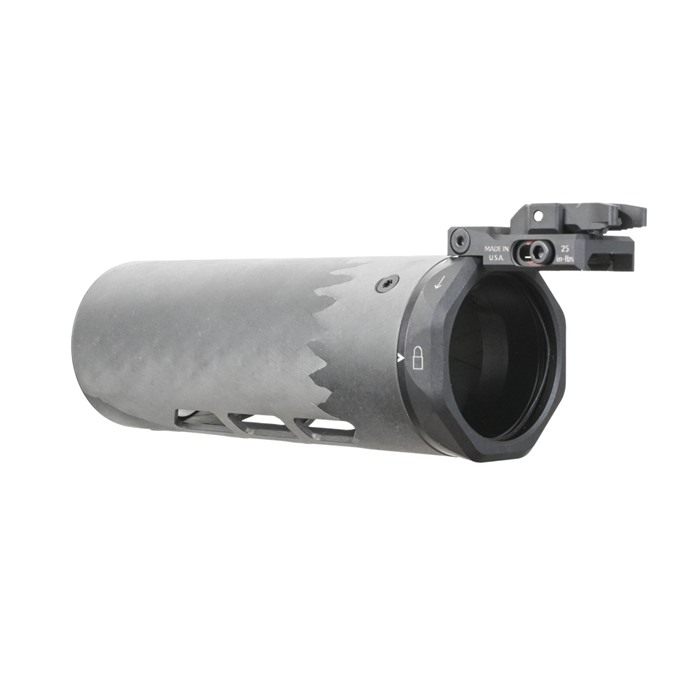 Montato su un Picatinny Rail, il U-RAC XL Suppressor Shield è progettato per soppressori fino a 1.900" (48 mm). La sua costruzione avanzata in composito offre una riduzione della temperatura media del 60% o superiore, prevenendo scottature e proteggendo l'attrezzatura.