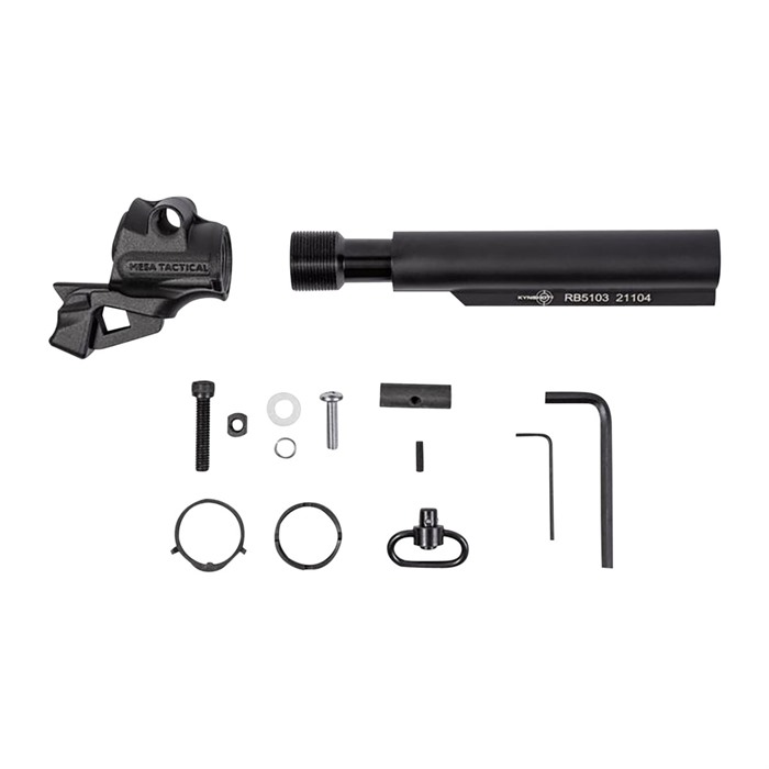 The concept is simple: the shotgun stock is replaced by an adapter that mimics the stock attachment point of an AR-15 lower receiver. This adapter accepts an AR-15 receiver buffer tube. The AR-15 collapsible stock and pistol grip can then be reliably attached to the shotgun. The most important capability of these adapters is to facilitate the use of collapsing or telescoping stocks, which provide a shorter length of pull (LoP) than the factory stock, which is especially important for law enforcement or “tactical” operators. In addition, these stock adapters accept a hydraulic buffer from KynShot™ that reduces felt recoil. The Mesa Tactical/KynShot combination is by far the most robust and most effective of several recoil-reducing shotgun stock systems on the market. Hydraulic recoil starter kits include the stock adapter and hydraulic recoil buffer, plus installation hardware (no stock or grip). All LEO adapters accept optional push-button sling swivels."