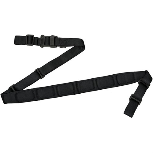 The MS1 padded sling is the latest addition to the Magpul line of rifle slings. By adding a padded section of variable-width tubular webbing to the already proven MS1 sling, this new product provides more comfort to the user when carrying heavy weapons. Other padded slings simply sew the pad onto or around an already existing sling. What Magpul has done is taken a section of variable-width webbing of our proprietary weave and stitched a high-grade, ripstop coated, closed cell foam pad to the inside of the sling. This ensures that the pad will never move inside of its housing and because the taper of the sling is woven, not stitched, the padded section has no known points of failure. By removing the structural stitching from padded slings, Magpul has created a sleek and streamlined solution that exceeds all others in durability and aesthetics.