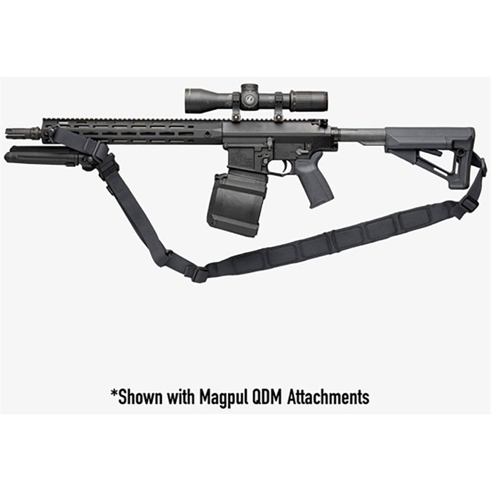 The MS1 padded sling is the latest addition to the Magpul line of rifle slings. By adding a padded section of variable-width tubular webbing to the already proven MS1 sling, this new product provides more comfort to the user when carrying heavy weapons. Other padded slings simply sew the pad onto or around an already existing sling. What Magpul has done is taken a section of variable-width webbing of our proprietary weave and stitched a high-grade, ripstop coated, closed cell foam pad to the inside of the sling. This ensures that the pad will never move inside of its housing and because the taper of the sling is woven, not stitched, the padded section has no known points of failure. By removing the structural stitching from padded slings, Magpul has created a sleek and streamlined solution that exceeds all others in durability and aesthetics.