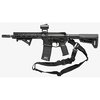 Gli attacchi sono realizzati con un finish Melonite resistente alla corrosione, e la slinga inclusa è in nylon a tessitura proprietaria larga 1-1/4” che non si arrotola. Questa slinga offre forza, velocità e sicurezza grazie all'uso dell'hardware Magpul QDM, mantenendo però la compatibilità con l'interfaccia standard della coppa QD.