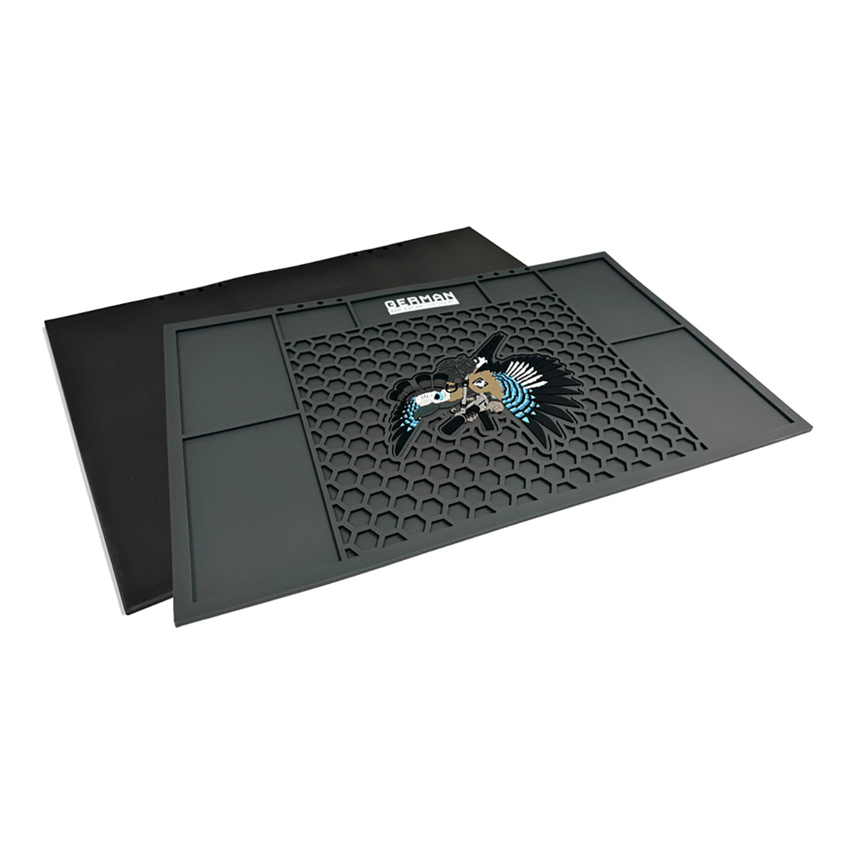 La superficie testurizzata a esagoni solleva leggermente la tua arma dal tappetino, in modo che non rimanga in pozzette di olio, grasso o solventi. Questo significa un'arma più pulita, meno disordine e nessuna impugnatura o telaio imbevuto.