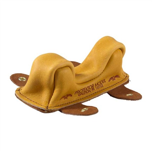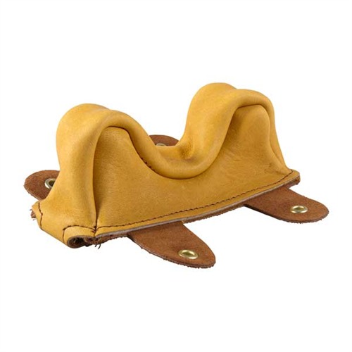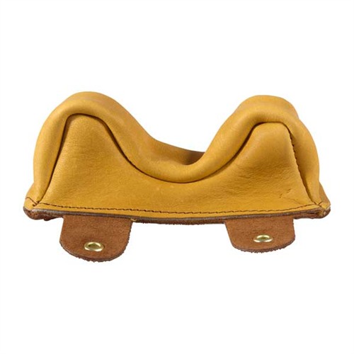 Gorgeous, handmade, smooth leather bench bags that allow rifle to slide freely during recoil. Made from 3-3½ oz., top grain cowhide, finished in a beautiful cork color. Bag bottoms made from same leather but sueded for a good grip on rest or bench. DuPont nylon stitching won t rot or mildew. Bags with a C sufix have a smooth sliding, Cordura bag with a suede base and tie-down tabs to stay in position on the rest. Brass eyelets won t corrode or abrade the tie-down, Superb! NOTE: Bags shipped empty. Fill with sand or lead shot that you provide. No. 2 & 2C Regular Owl Ear Front Bags wide ear spacing accommodates varmint forearms.
