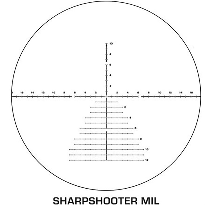 - Reticoli Sharpshooter FFP incisi progettati per una misurazione e un holdover precisi a lungo raggio.