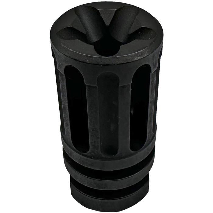 Think of the PentaComp like the A2 Birdcage’s better looking cousin. Part flash hider and part compensator, this muzzle device is meant for true performance without sacrificing style. Precision machined, heat treated, and phosphate coated for a lifetime of reliable, rugged use. 1/2x28 thread pitch, intended for use ONLY on 5.56/.223 firearms.