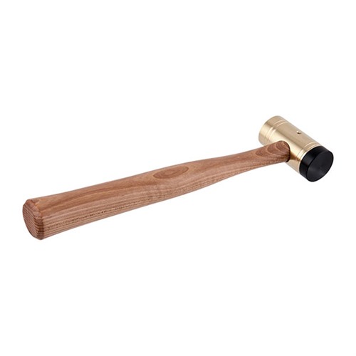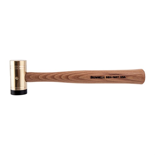 PREMIUM DELRIN-TIPPED BRASS HAMMER The Brownells Premium Delrin-Tipped Brass Hammer is a precision-crafted tool designed for gunsmiths, firearm enthusiasts, and professionals seeking reliable performance and exceptional versatility. Made in the USA, this hammer is built to handle both delicate and robust tasks with ease. Key Features: Dual-Function Head: Featuring a solid brass head for delivering firm, effective strikes and a replaceable Delrin tip for softer, non-marring impacts. This dual-purpose design makes it ideal for sensitive firearm components and heavy-duty tasks. High-Quality Materials: The brass head is crafted from durable CDA 360 brass rod and hand-polished for a professional finish, ensuring long-lasting reliability. Ergonomic Hickory Handle: The handle is made from properly seasoned hickory, hand-turned, and securely pinned for a comfortable grip and excellent control during use. Replaceable Delrin Tip: The Delrin tip provides flexibility for tasks requiring precision and surface protection, extending the hammer's functionality. Specifications: 8oz Hammer: Face Dimensions: 1” Length of Head: 2.1” Overall Hammer: 10” 16oz Hammer: Face Dimensions: 1.25” Length of Head: 2.6” Overall Hammer: 10.5” Applications: This hammer is perfect for a range of gunsmithing tasks, including driving pins, aligning components, and performing assembly or disassembly without damaging finishes. Its dual-head design ensures adaptability for both delicate and demanding applications. Customer Feedback: Users frequently praise the Brownells Premium Delrin-Tipped Brass Hammer for its superior craftsmanship and ergonomic design. Many highlight the versatility of the dual-purpose head, which balances strength with the care needed for sensitive surfaces. Summary: The Brownells Premium Delrin-Tipped Brass Hammer is an essential tool for gunsmiths and firearm enthusiasts who value precision and quality. Combining durable materials with thoughtful design, this hammer offers reliable performance for a wide variety of gunsmithing tasks.