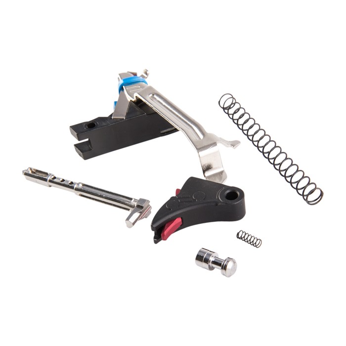Zev inizia con il proprio grilletto, barra del grilletto, blocco del grilletto, estrattore, connettore, molla del grilletto, un percussore in acciaio inossidabile leggero, oltre a un plunger di sicurezza e molla per affinare il pull del grilletto. Includono anche una molla del percussore a potenza ridotta per produrre una sensazione di grilletto più leggera per la competizione, e la molla del percussore di peso standard per l'uso quotidiano e il servizio.