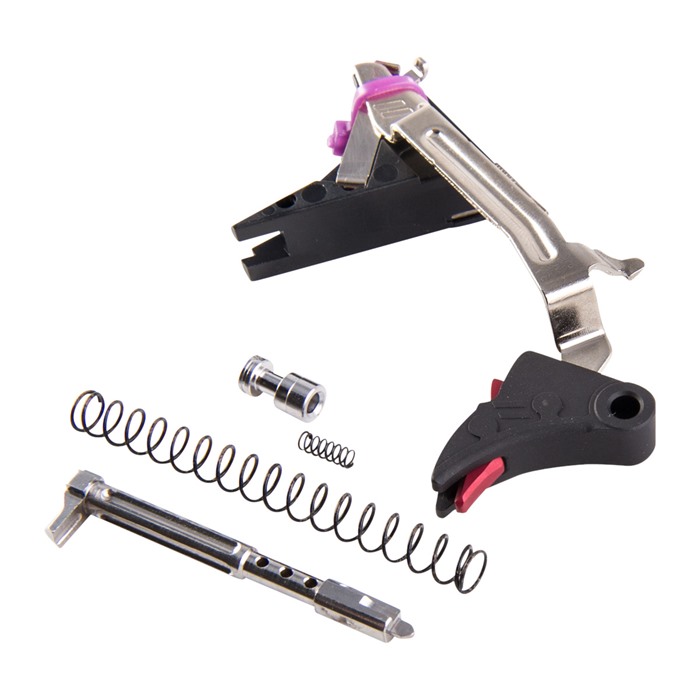 Combining the ease of drop-in installation with the performance benefits of a custom trigger job, Zev Technologies’ Pro Ultimate Trigger Kit for Glock® Gen 4 greatly enhances the feel and performance of your trigger. At its core is Zev’s own trigger, trigger bar, trigger block, ejector, connector, trigger spring, lightweight stainless steel firing pin, plus safety plunger and spring to refine the trigger pull. Next Zev adds a reduced-power striker spring to give you a light-feeling competition trigger yet a factory-weight striker spring for daily carry or duty use. Zev then ups the performance game with a skeletonized stainless steel striker with reduced mass and highly polished surface to speed lock time and deliver an even lighter, smoother perceived trigger pull, plus ultra-fast reset so you’re ready for follow-up shots. The trigger itself boasts a revolutionary riveted assembly process that makes it one of the longest lasting and most reliable replacement triggers available.