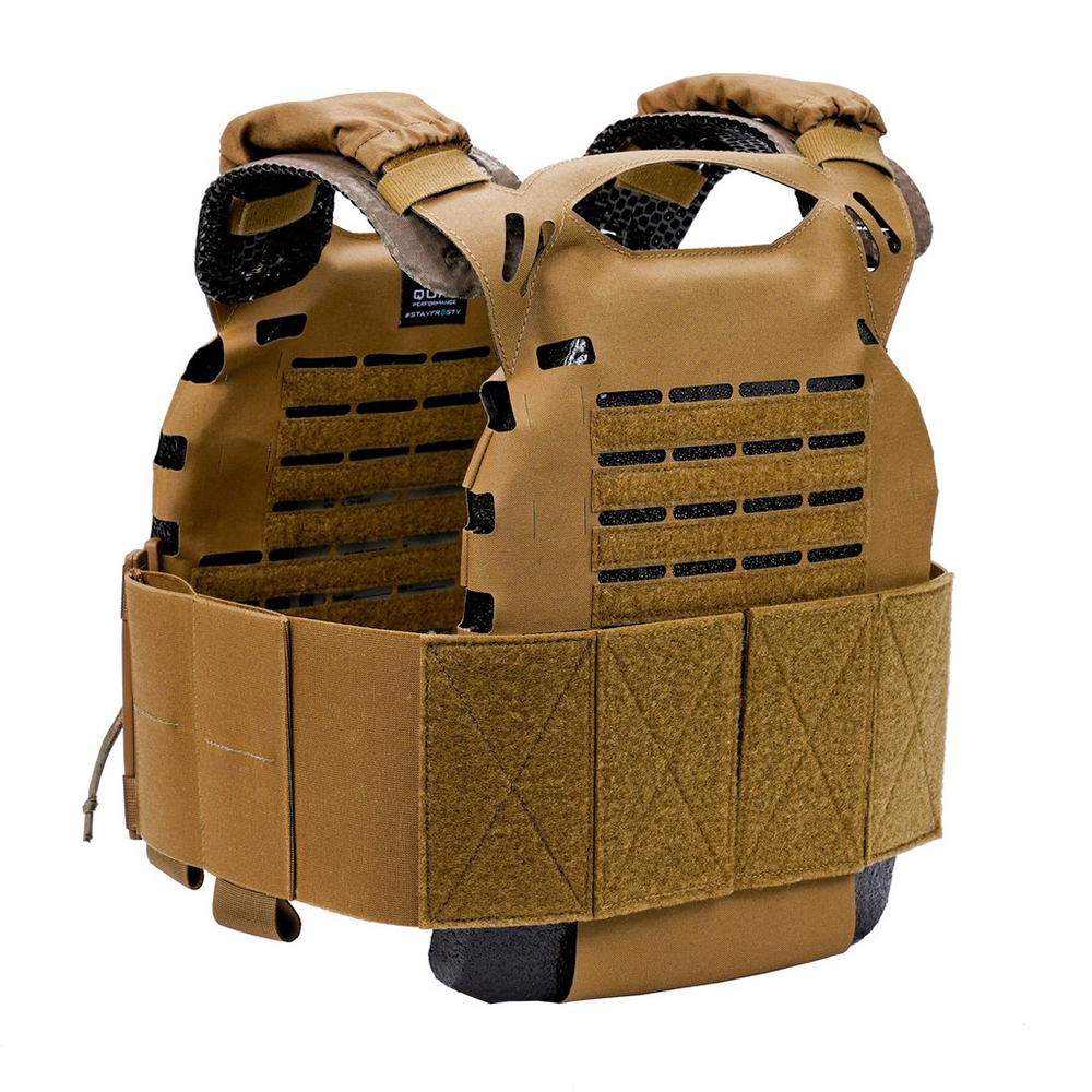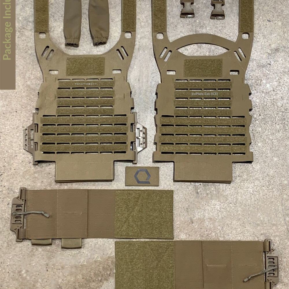 IcePlate EXO (ICE) is a new type of ultra-minimalist, ventilated, multi-role, scalable plate carrier. IcePlate EXO (ICE) anchors our IceAge Ecosystem by combining all of our human performance enhancement and environmental inoculation technologies into an ultra-light, durable, and breathable platform with unrivaled capabilities. IcePlate EXO (ICE) weighs so little yet withstands so much. It furthers our mission of providing American Warfighters, Law Enforcement Officers, Private Security Contractors, and responsible citizens the means of consistently achieving Individual Operator Overmatch -- When Close Counts. Includes:1x ICE Front Sleeve1x ICE Rear Sleeve1x ICE Elastic Cummerbund w/2x 5.56 Mag Pockets per side2x ICE Shoulder Shrouds2x IcePlate PVC Pull Tabs2x Swift Clips1x Laser Cut Q-Hex IR Patch (colors may vary) Specs: Light + Strong Using a unique and incredibly strong laser-cut, high molecular weight polyethylene laminate that is 14 times stronger than steel, ICE weighs just 19 ounces. This makes it one of the lightest plate carriers available today. It is also hydrophobic, cut-resistant and abrasion resistant. MAPs-based Modularity With MAPs (MOLLE Attachment Points) and loop on both the inside and the outside of each sleeve as well as an open-bottom architecture (also accommodates Left Exit and Right Exit IcePlate Curve), ICE is configured for maximum ventilation, modularity and drainage. ICE will not retain water, even under the most intense circumstances. Medium ESAPI Plate Compatible ICE fits Medium ESAPI plates. This design synchronizes with IcePlate Curve to create the thinnest, flattest, toughest and coldest (or hottest) system ever. Evaporative cooling is facilitated by the laser-cut MAPs on the inside of the plate bag, but can also supercharged easily with IceVents. Unparalleled Customization IcePlate Sleeve (coming soon) can be stacked (via MOLLE and/or hook and loop) for streamlined carry of both/either/or ESAPI armor plates and IcePlate Curve. Individual IcePlate Sleeves can also be purchased to MOLLE onto any plate carrier on the market. Don/doff is easy with a flat and durable quick-release system. ICE also features an elastic cummerbund with four pouches for 30-round magazines, SOARescue MedMags, radios, etc. The ICE MOLLE Cummerbund will be backwards compatible with all ICE units. Weight: Ultralight at just 19 ouncesRimosso dal programma