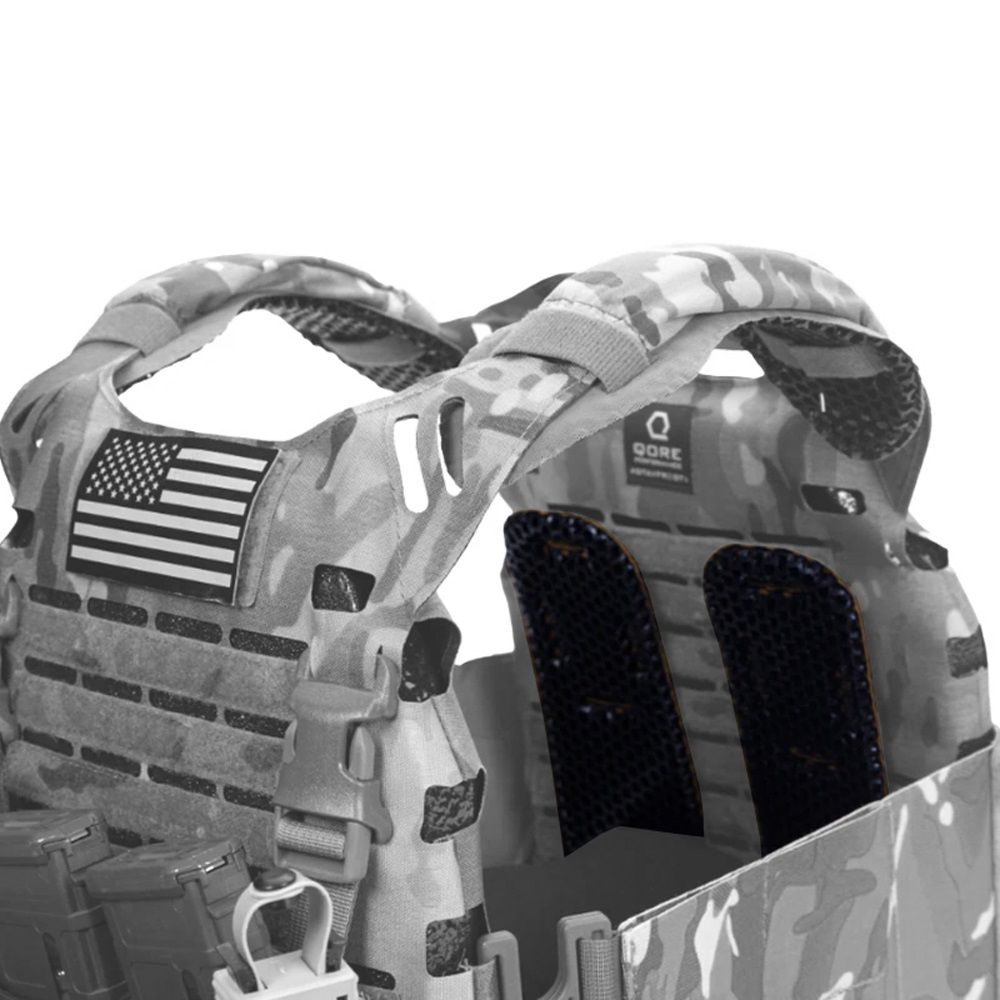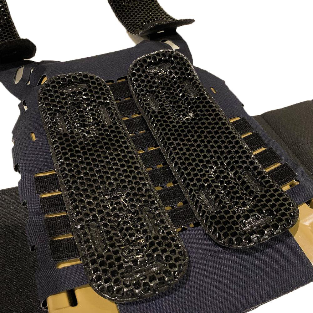 Designed for use with Combat Shirts and other collared uniform shirt styles, IceVents Classic set the new standard in high performance plate carrier shoulder pad technology. IceVents Classic are the most advanced Universal Plate Carrier and Pack/Ruck shoulder pad ever created! Includes: 2x IceVents Classic Universal Plate Carrier Shoulder Pads/Backpack Shoulder Pads (black) 48" roll of Back2Back Hook/Loop Tape (black) Specs: Versatile + Compatible IceVents Classic can be used for Plate Carriers, backpacks, the HiVis StayFrosty Vest, Ear Protection Headsets, Gun Belts, Tool Belts, or countless other industrial or tactical equipment to deliver unrivaled end-user comfort. Their modular and flexible form makes it simple to adapt IceVents Classic to support your application. Water Resistant + Anti-MicrobialHigh Tech Materials IceVents Classic unique channel ventilation creates an effective microclimate for long-term comfort and enhanced endurance. High Tech Materials IceVents Classic feature exclusive and proprietary Supracor Stimulite impact-absorbing hexagonal honeycomb thermoplastic elastomer (TPE) technology. Stimulite is used and proven in the F/A-18 Hornet, V-22 Osprey, 787 Dreamliner, 747-8 Intercontinental and leading medical products. Cord Management Hook and Loop accessories enable simple, custom installation and cord/tube management. Increased Load Bearing Capacity Loads are absorbed and dispersed evenly throughout the honeycomb matrix of IceVents Classic. Because the cells are interconnected, when one cell buckles from impact, the walls of the adjacent cells also buckle to absorb the force, similar to a ripple effect. The fusion-bonded honeycomb in Stimulite absorbs shock in this manner and also has phenomenal load-bearing and load-balancing capability as a result of its elastomeric composition. Stand-Off Ventilation IceVents Classic now can connect directly to the inside of all body armor equipped with body-facing loop fields/pontoons. This is ideal for dry and arid climates where evaporative cooling is effective. For humid climates, we recommend the unrivaled conductive cooling power of IcePlate. Size: 10.25"x3.125"x0.25"Rimosso dal programma