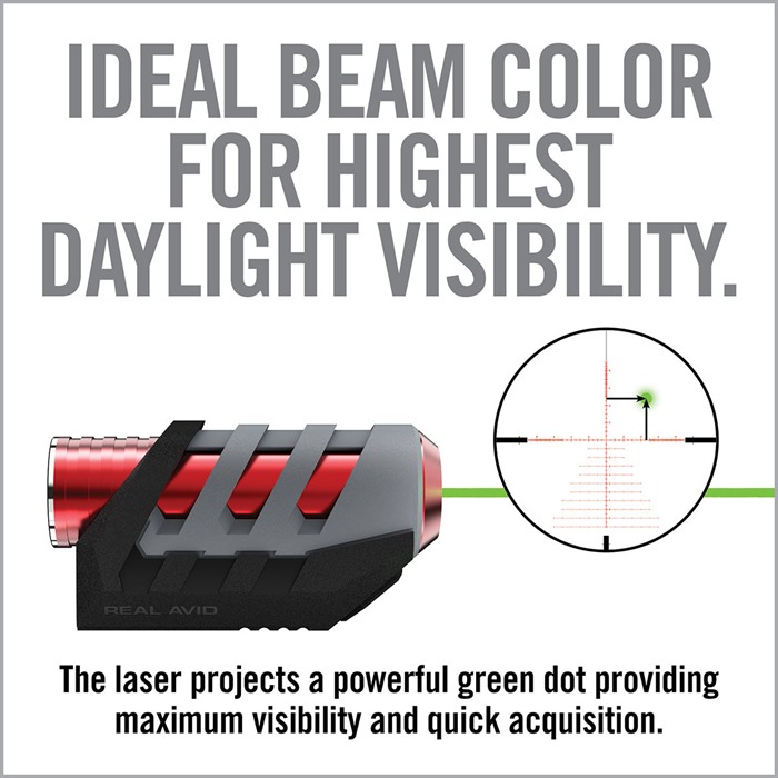 All'interno di un robusto e protettivo esoscheletro si trova un laser verde di precisione, calibrato in fabbrica. Questo laser proietta un potente e perfetto cerchio utilizzando il colore più luminoso e visibile in pieno giorno nello spettro. Offre massima visibilità e acquisizione rapida.