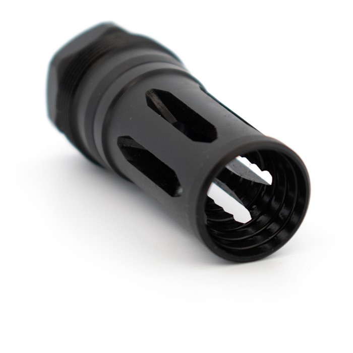 R2 FLASH HIDERS These fit Plan B type mounts. Always use an alignment rod to ensure that the entire system is set up correctly. Make sure all surfaces are cleaned and the muzzle device has been torqued and Rockset to the barrel. Use on a Q can voids your warranty, be warned. Torque the muzzle device to approximately 30 ft lbs. Make sure the muzzle device is square against the shoulder. When setting the silencer on the muzzle device, ensure that the threads and tapers are clean. Torque the suppressor to 10 ft lbs. Ensure alignment. Enjoy. The nitride finish does lead to a tighter seal, with that said, it is extremely important to torque and rockset your muzzle device to the barrel properly. FEATURES: 17-4 PH Atlas and Atlas XL compatible Plan B compatible Black Nitride finish (67 HRC Surface hardness) Shims not included, if you would like to specifically time this, shims will be required. Note: your barrel may require a shim if the manufacturer did not put a thread relief on it.