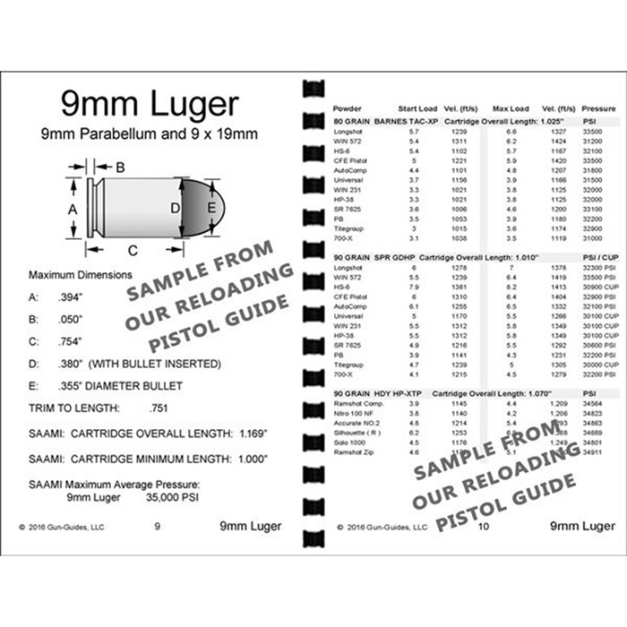 Want to get the most out of your handgun? Check out the hundreds of handload recommendations found in the Reloading Guide for Pistols, covering a couple of today's most popular calibers: 9mm and .45 ACP. The Reloading Guide for Pistols provides handloading formulas for +P loads for both 9mm and .45 ACP, as well as a number of support pages that dial-in on essential reloading elements, such as quality control, burn rates, primers, powders and more. Printed on high-quality, bright, white paper Features durable cardstock cover Comb-binding lies flat on work surfaces Grayscale images Nearly every popular bullet manufacturer and powder companies are reflected in the Reloading Guide for Pistols, covering the range of jacketed, lead-cast and frangible rounds.