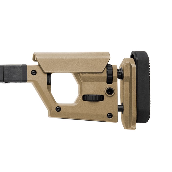 The Magpul Pro 700L Rifle Chassis is an uncompromising, full featured precision rifle chassis for long action Remington 700 and Remington 700-footprint rifles. The Pro 700L combines innovative engineering, precision machining, Mil-Spec quality finishes, and an extensive list of purposeful design features with complete adjustability to provide demanding end users with the most comprehensive available precision rifle platform solution for true out of the box performance. Based on a full billet aluminum skeleton and clad in Magpul polymer for environmental comfort, noise mitigation, and ergonomics, the Pro 700L is also fully ambidextrous. Capable of fitting both right and left-handed actions with the simple swap of a bolt-cutout plate, and with a reversible cheek riser and reversible hinge on the folding version, “lefties” haven’t been “left out.” MAG1002 PRO 700L - FOLDING STOCK IS SUPPLIED WITH THE PRO FHA - FOLDING HINGE ADAPTER (MAG999) INSTALLED MAG1003 PRO 700L - FIXED STOCK IS SUPPLIED WITH THE PRO FSA - FIXED STOCK ADAPTER (MAG998) INSTALLED Type III hard anodized machined 6061-T6 billet aluminum V-bedding block, body, adjustment knobs and forend with high strength injection molded polymer body covers optimally placed for comfort and aesthetics Ambidextrous bedding block can be changed by swapping the QD sling swivel plate and bolt retainer inserts for left or right hand actions using a 1/8” hex wrench A Magpul Pro NVM – Night Vision Mount clip-on mounting rail solution is available Overall LOP adjustment range is 13.25” – 15.125” Butt-pad height can be adjusted up 1.33” and down .90” and is adjustable left or right for a total of 5 degrees Comb height adjustment has a 1" range with a secondary locking knob to eliminate movement in the cheek riser Cheek riser features a 3-position fore/aft adjustment of +.375", 0" and -.375" which can also be changed for left or right side usage using only a common hex wrench Injection molded polymer grip with 5 degree forward edge sweep and enlarged palm swell with 7 degree aft edge sweep for enhanced user comfort combined with a .75" fore/aft adjustment range using a common hex wrench. Additional grip option included with a more aggressive sweep and enlarged palm swell for the shooter that is more inclined to a less vertical grip interface (8 degree forward / 20 degree aft edge sweep) Durable cast steel rotation limited QD sling swivel mounts with Melonite finish fits up to 1.5” push button swivels M-LOK slots for accessory mounting on the forend (left-6/right-6/bottom-7) and the stock (bottom-2) Integrated AICS pattern magazine well of reinforced polymer construction optimized for PMAG® 5 AC™ L, Standard and PMAG® 5 AC™ L, Magnum - AICS Long Action magazines as well as most other AICS pattern long action magazines Large trigger guard allows for use with gloves and accepts most factory and aftermarket curved or flat triggers Low-profile, anti-snag ambidextrous magazine release is made of Melonite treated steel for wear and corrosion resistance Made in the U.S.A.