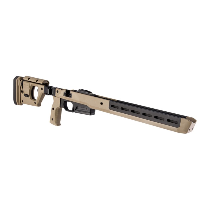 Il Chassis Pro 700 di Magpul combina ingegneria innovativa e lavorazione di precisione per creare un chassis per fucile di precisione completamente attrezzato per azioni Remington 700. Basato su uno scheletro in alluminio 6061-T6, il Chassis Pro 700 è rivestito in polimero Magpul per comfort, riduzione del rumore ed ergonomia.