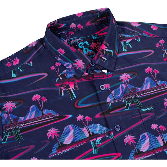 La RETRO RIFLE SHORT SLEEVE BUTTON DOWN SHIRT è una camicia a maniche corte leggera e traspirante, ideale per chi ama il mondo delle armi e degli accessori per il tiro.