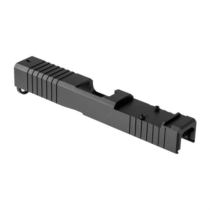 Glock® pistols are used by individuals and agencies all over the world due to their reliable performance under pressure and in difficult conditions. The Brownells RMR Slide for Glock 19® Gen4 further improves the shooter's ability to operate the slide and aim accurately under those conditions. It features distinctive, wraparound front cocking serrations that aid in manipulating the slide to check the chamber or clear a jam. And we'll be honest: the serrations just look cool, too! The RMR Slide for Glock 19® Gen4 has a built-in mount for the popular Trijicon RMR red dot sight and certain Holosun sights (see list below), enabling shooters to get on-target faster and more easily than they can with standard pistol sights. But don't worry - it includes factory front and rear sight cuts for backup "iron" sights. (With an RMR installed, you will need to install suppressor-height iron sights for proper co-witnessing.) You can get your RMR Slide with a "window" cutout on top between the front serrations (so they don't wrap on this one) that enhances airflow to keep the barrel cooler - ideal for hard-working action competition pistols. Plus, if you have an upgraded barrel with a contrasting finish or fluting, spirals, "flames," or another unique exterior pattern, the window helps your gun stand out from the sea of matte black on the firing line. Fits Gen4 Glock® 19 pistols & clones Machined from 17-4 stainless steel billet Window & Solid top models to choose from Pre-cut Trijicon RMR red dot sight mounting slot (screws included) Also accepts Holosun HE508T, HS507C & HS407C red dots Each RMR Slide for Gen4 Glock® 19 starts life as a billet of 17-4 stainless steel that is machined to Glock® factory specifications inside, so it’ll fit factory frames and accept factory or aftermarket barrels and Gen4 internal parts. The tough, non-reflective, Black Nitride finish resists surface scuffs and scratches. An RMR slide is an excellent upgrade for transforming your Glock® 19 from an excellent off-the-shelf pistol into to the best handgun you've ever shot! Brownells Gun Tech™ Note: Channel liner required for these slides. Channel liner is a press fit and requires a tool to install. We recommend #777-100-017. Includes patented optic cut technology pioneered by ZEV Technologies. Patent No. RE47335