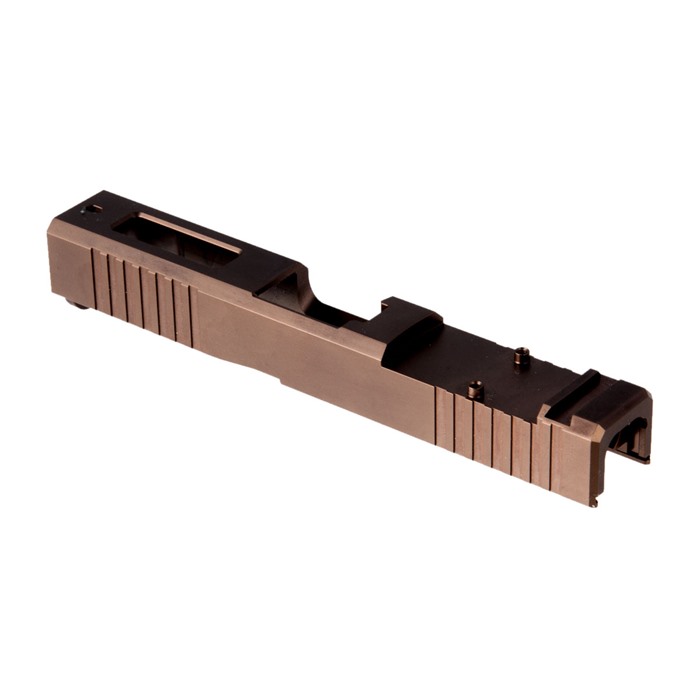Ogni RMR Slide è realizzata secondo le specifiche di fabbrica Glock®, accettando sia canne originali che aftermarket. La finitura bronze PVD non solo migliora l'estetica, ma offre anche una maggiore resistenza all'usura.