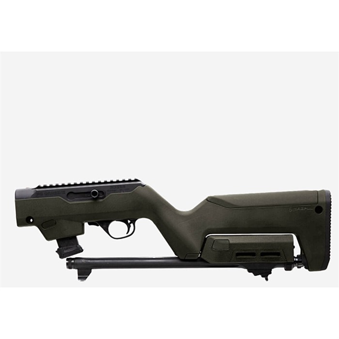 When the Backpacker Stock first emerged for the popular Ruger 10/22®, enthusiasts flocked to the streamlined design that made takedown models of the 10/22 easy to carry. Now, that same functionality is available to owners of the Ruger PC Carbine®, which operates with the same quick-takedown mechanism as the 10/22. This Magpul Backpacker Stock provides ultimate portability and provides many of the same features found in the original X-22 Backpacker. You'll find the same interface that locks the two separate halves of the gun together for transport and storage, and there are M-LOK attachment slots on the forend that make adding accessories a breeze. Ruger® models equipped with chassis and/or tubular handguards utilize a Modular Handguard Mount which will need to be replaced by the end user with a standard Takedown Block in order to mount the Magpul Forend. Each Magpul PC Carbine® Backpacker Stock includes two storage locations, one found in the water-resistant grip and the other in the cheek riser that accommodates storage for a single pistol magazine. The size of this rear compartment will accommodate magazines up to the size of Magpul's PMA 21 GL9. This drop-in stock fit is designed to work with PC Carbines chambered in 9mm and .40 S&W, and there are interchangeable cheek risers that will work for mounted optics. A non-slip rubber butt pad ensures shooting comfort, and you can add an additional 3/8-inch insert to adjust the length-of-pull.