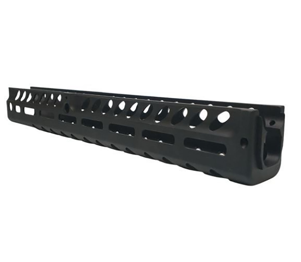 850068664498 Features: – M‑LOK and flush‑cup holes for sling swivels – 1 sling‑stud mounting point, 24 M‑LOK slots – 18 finger grooves per side for improved grip Technical Details: – Length: 28.5 cm (11") – Width: 3.2 cm (1.25") – Height: 3.8 cm (1.5") – Weight: 140 g (5 oz) Installation: The included barrel band and four mounting screws ensure a solid, secure fit and prevent lateral movement. Finish: Type III black anodizing for added durability. Included: – 9.25" M‑LOK aluminum handguard with sling stud – Barrel band and mounting kit with 4 screws