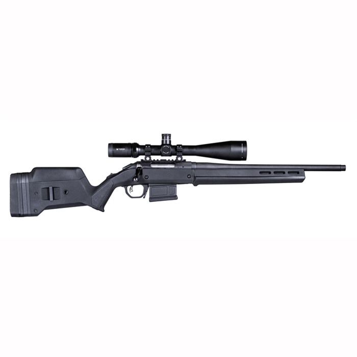 In keeping with the Hunter line, Magpul has created the Hunter American Stock for Ruger® American Short Rifles. This stock is a true drop-in solution for the operator and requires no bedding. High strength steel recoil lugs Compatible with barrel profiles up to medium palma Fully adjustable length of pull Optional cheek riser kit to adjust cheek weld (stock comes pre-fitted with 0.25” Riser) M-LOK compatible for additional accessories Available in Black, Flat Dark Earth, Gray, and OD Green The Magpul Hunter American Stock features reinforced polymer construction with Type III Hard anodized, machine finished cast aluminum bedding block.