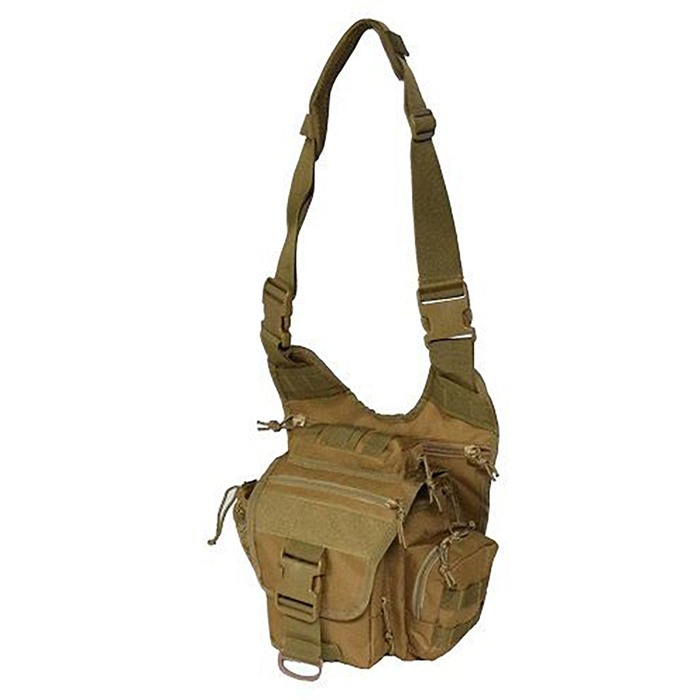 CACTUS JACK GEN II SIDEWINDER SLING BAG The Cactus Jack Sidewinder Sling bag makes a great easy carry-all bag that doubles as a conceal and carry bag. FEATURES: Hook-and-loop CCW access pocket Padded mesh-lined shoulder strap and back Oversized quick-release buckle 4 exterior zip pockets 2 pen slots Drawstring skirt for expandable storage Mesh water bottle or mag holder SPECIFICATIONS: 2" nylon / mesh padded shoulder strap Oversized quick-release buckle Breathable mesh padded back pads 4 exterior zipped pockets 7-1/2" x 4" x 9" main compartment 4.4 liters (270cu in) capacity Drawstring skirt for over-stuffing Mesh water bottle / mag holder MOLLE attachments for adding accessories Built in holster and mag holder in discreet pocket for concealed carry.