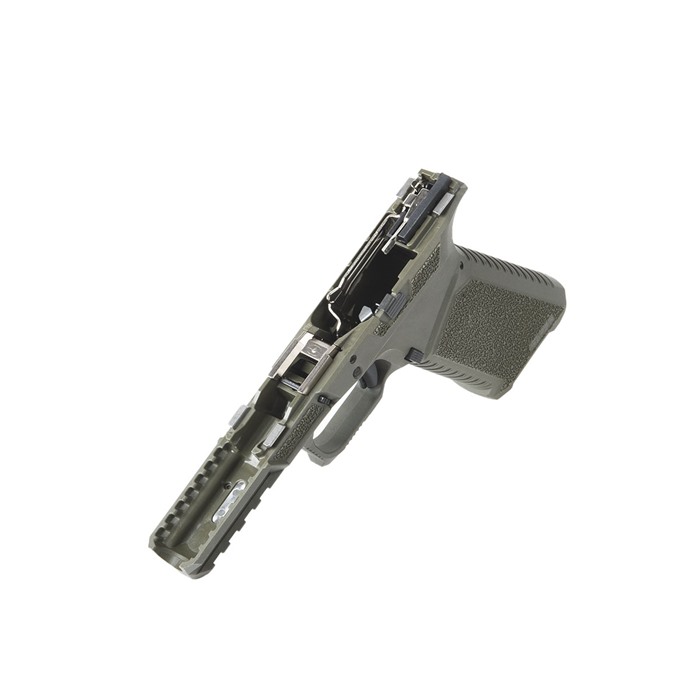 Il pacchetto di assemblaggio del telaio include: telaio in polimeri SCT17, blocco di bloccaggio in nichel elettrolitico, assemblaggio del grilletto lucidato con barra del grilletto in nichel elettrolitico e grilletto in polimeri, fermo del caricatore in polimeri standard, molla del fermo del caricatore, perno del grilletto in acciaio, perno del blocco di bloccaggio in acciaio, bloccaggio della slide standard, molla del bloccaggio della slide, perno della custodia del grilletto in polimeri, custodia del grilletto con espulsore in stile GEN4, assemblaggio del bloccaggio della slide standard e connettore del grilletto in nichel elettrolitico lucidato da 5.5 lb.