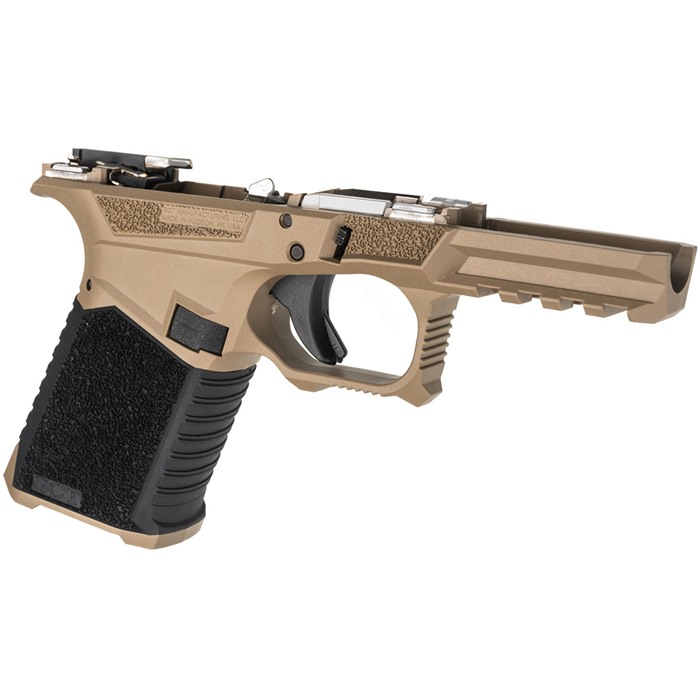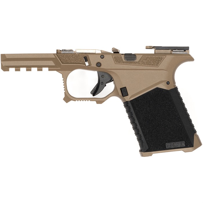 Con guide sovramoldate installate, pronte per l'assemblaggio. Sono realizzate con una miscela di polimeri proprietari leader del settore e sono compatibili con i pezzi Glock® Gen 3 19, 23 e 32. Ogni telaio è assemblato da un armorer certificato utilizzando i kit di parti inferiori SCT Manufacturing, testati e provati per soddisfare o superare le specifiche OEM.