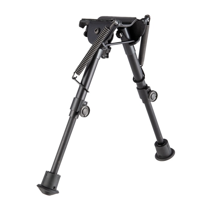 Expanding its line of BR Model Bipods, Harris offers a new option that allows shooters to quickly set their rifle into place on uneven terrain, thanks to a self-leveling mechanism built into the unit. This system also allows shooters to quickly adjust leg height from their shooting position, and a twist of the locking mechanism keeps the bipod locked into place. Despite these changes, the Harris BR Bipod features the same classic S-Series base, allowing the gun to rock from side to side, as well as a 1A2 stationary base. The feet are capped with rubber, and the height is adjustable from 6 to 9 inches.