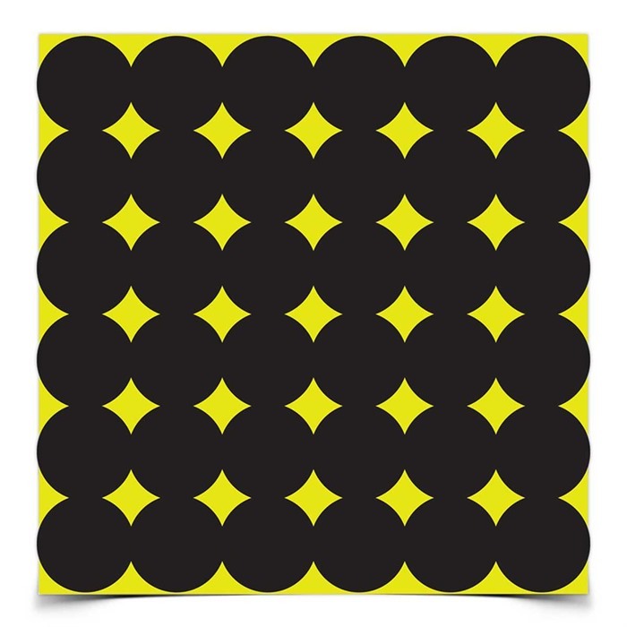 All'impatto del proiettile, si forma un brillante anello giallo attorno al foro del proiettile, offrendo un'ottima visibilità. Ogni bersaglio può essere attaccato e riutilizzato almeno due o tre volte.