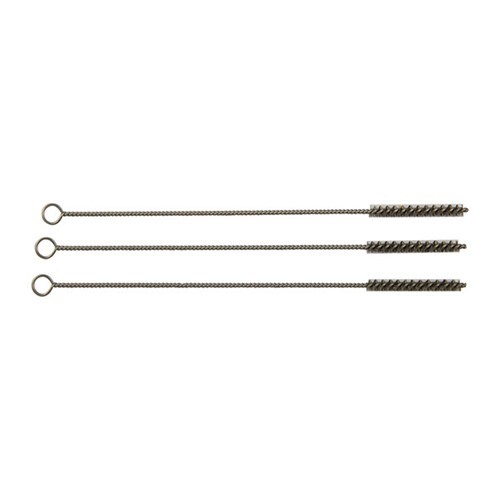 Le spazzole in acciaio inossidabile extra-rigide e a filo attorcigliato sono progettate specificamente per la pulizia dei porti del canna del fucile. Queste spazzole sono affusolate e dimensionate per adattarsi perfettamente al porto, liberando i residui di wads e il deposito di carbonio; lasciano il porto pulito e pronto all'uso.