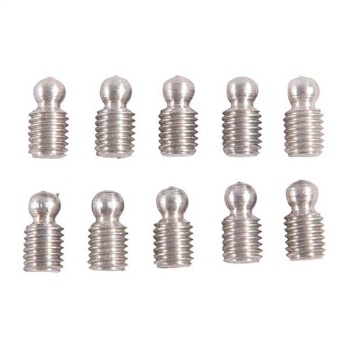 Brownells Shotgun Sight Kit “B” is the most important improvement in the replacement shotgun sight field since the introduc-tion of the original Brownells Shotgun Sight Kit nearly 20 years ago. The new Kit is truly the natural and logical companion to the original Kit “A” - giving you, the gunsmithing or sports shop, all the sights that Kit “A” doesn’t contain, but that you need to have a really versatile and complete replacement shotgun sight inventory in just 2 small boxes. Plus, in Kit “B”, we took the practical step of making the White beads out of stainless steel. Stainless is stronger, won’t crush or distort when the beads are installed, does not have to be removed when the gun goes into the hot bluing solution (and won’t dissolve and ruin your bluing bath once it’s in there)!! Plus, the stainless won’t break off at the top of the shank, stays shiny forever, stands up to tougher use in the field, and generally is one whale of a lot better sight.But, the real advantage of Kit “B” is that by combining it with Kit “A”, you can now have a selection of shank sizes unequaled among shotgun sights. So, if you get a gun in your shop with a badly misshapen, worn or stripped-out sight hole, you will have a bead of exactly the same size, but with a shank one size larger. Replacement is then just a simple matter of drilling out the hole to the next size larger, tapping, and inserting the new bead. The most important thing is that the Kit saves you time, giving faster work turnaround in the shop, which makes you more money. It also eliminates “patching-up” the original hole (which often then requires repairing the blue, too) and redrilling and tapping for the original size shank. And, it gets your customer back in the field sooner which makes him happy, and makes you look good! Like the original Kit “A”, the workmanship is superb, the sight globes are true spheres, the threads are cut onto the shank, so they are clean, sharp, and give the best possible fit. And, they are threaded right up to the base of the bead so you can set the sight exactly onto the barrel.Thread sizes are 6-48 and 8-40; certainly two of the most common and popular thread sizes in the gun industry, so everyone has the necessary drills and taps. The bead sizes are .067, .130 and .175, again the most popular sizes, and the same as those used in Kit “A”.The Gold beads are machined from finest brass; the White beads from tough stainless steel. Because these are solid metal beads, they cannot bleed, chip, peel or have the color wear off.As the companion to Kit “A”, Kit “B” also comes in a clear plastic counter case. Each individual sight number is in its own clearly identified box on a black tray. There are 10 sights of each number, giving you a total of 80 new sights. By itself, a complete inventory of 3 very popular sizes in 2 colors, with 6-48 and 8-40 shanks; but as a companion to Kit “A”, an unbeatable assortment of the most versatile and useful shotgun sight beads available anywhere. And, right at your fingertips, ready to install for your customers. Order your Brownells Shotgun Sight Kit “B” today.Refill Sights for Kit "B" - Refills for the Shotgun Sight Kit “B” are single or 10-pak of sights of one number.