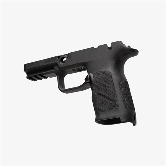 After 25 years of making the best polymer accessories for firearms, Magpul is bringing that experience with enhanced features, function and fit to pistols. The Magpul EHG SG9 Compact grip frame for the SIG Sauer P320 with manual safety functions with OEM P320 trigger modules, OEM 15-round magazines and magazine base plates, and small components and accessories. The EHG SG9 features an integral “carry-sized” magazine well flare and includes a Picatinny rail for lights or lasers. As an added bonus, the frame also comes with the Magpul-designed Magazine Release installed, which is reversible for left-handed shooters. This steel magazine release is finished in QPQ to resist corrosion and wear, and the release’s contoured surface features custom jimping to ensure positive engagement with the shooter’s finger when changing magazines. The compact frame wears a ¾-scale TSP texturing to provide a sure purchase on the grip, even in wet conditions. The frame is approximately 1.25" wide and weighs just over 4 ounces. For additional retention measures, a lanyard slot is included at the bottom of the frame’s backstrap. Made in the USA. Drop-In Replacement Functions with all OEM parts and 15-round magazines Ergonomic Design Flared magazine well ¾-scale TSP textured grip surface Lanyard slot 1913 Picatinny Rail Accepts most pistol lights and lasers Magpul Magazine Pre-Installed Reversible for left-handed shooters Contoured and textured surface for positive engagement Fits all SIG P320-family compact models that accept a 15-round magazine. NOTE: This model is for pistols with a manual safety. Magazines: Compatible with OEM SIG P320 15-round and larger magazines. Holsters: Known fit with Safariland models 7390-7TS, 7362-7TS, 7360-7TS RDS; Bladetech Total Eclipse; Raven Concealment models Vanguard, Perun, Perun-LC; Blackhawk models ARC, SERPA CQC; and Fobus Evolution. Lights: Compatible with Surefire X300 Family/XH Family, Streamlight TLR family, and LMD Pistol Enhancer