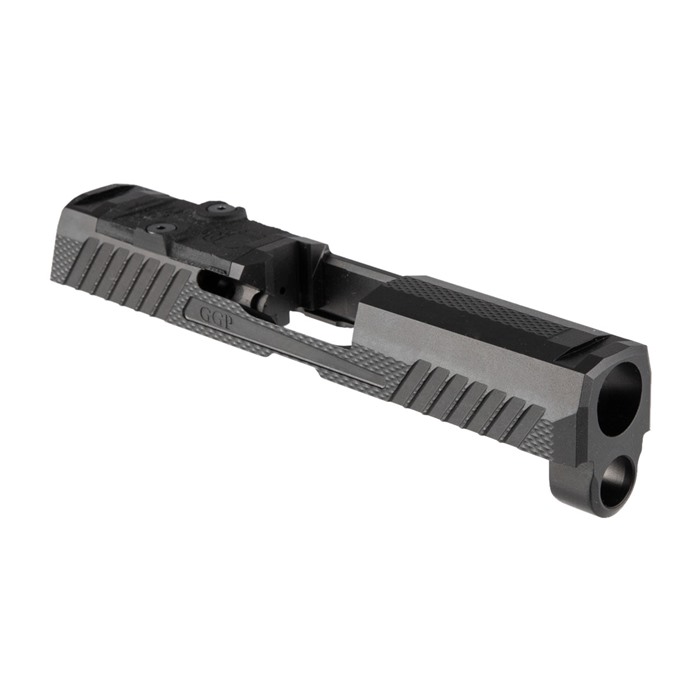 The adoption of the P320® platform by the U.S. Military, as well as many Law Enforcement agencies, professional lead farmers, competition shooters, and firearm instructors led to the development of a new line of GGP aftermarket slides. After all, the P320’s ability to be custom tailored to the individual user’s preferences in grip length, grip size, as well as slide length and sight radius are all highly desirable features. Why stop there, when you can have even more customization options when upgrading to a drop-in GGP320 slide. Just like our GGP17/19 and SPG43 slides, these GGP320 slides offers enhanced aesthetic features, increased grip serrations and an improved coating without compromising function. We also took our hybrid MRDS optic cut and added a third option, the SIG ROMEO1. Now you have to option to use a ROMEO1 as well as a Trijicon RMR or Leupold DeltaPoint Pro right out of the box without using bulky adapter plates that only raise the optic further above the bore axis. Available in Grey or Black DLC finish for corrosive and abrasion resistance, the GGP320 will also be available in FDE Cerakote. The GGP320 is a drop-in install that comes with all the enhancements that professional handgun shooters have come to expect from Grey Ghost Precision. GGP320 SLIDE FEATURES: STRIPPED SLIDE MACHINED FROM 416 STAINLESS STEEL FOR TIGHTER-THAN-FACTORY-TOLERANCES AVAILABLE IN BLACK AND GREY DLC (DIAMOND LIKE COATING) OR FDE CERAKOTE 9MM COMPATIBLE ONLY OPTIC CUT COMPATIBLE WITH LEUPOLD DPP, TRIJICON RMR AND SIG ROMEO1 AND ROMEO1PRO (IF THE SLIDE WAS MADE AFTER JANUARY 1ST 2021) AND SUPPLIED SCREWS/SHIM PLATES Not Compatible with Vortex or Aimpoint Optics INCLUDES G10 COVER PLATE WHEN NOT RUNNING AN OPTIC VERSION 1 SLIDE PATTERN WITH AGGRESSIVE SERRATIONS AN WINDOW CUTS VERSION 2 SLIDE PATTERN WITH CHECKERED TEXTURING AND NO WINDOW CUTS COMPATIBLE WITH SIG P320® FULL-SIZE, X-FIVE*, COMPACT, CARRY AND X-CARRY GRIP MODULES *X-FIVE BARRELS ARE NOT COMPATIBLE WITH GGP320 SLIDES DUE TO ITS PROFILE. PLEASE USE A STANDARD FULL SIZE 320 BARREL. OPTICS NOT INCLUDED COMPLETION PARTS NOT INCLUDED To be used with brass, factory loaded ammunition Weight Compact | 7.76 oz