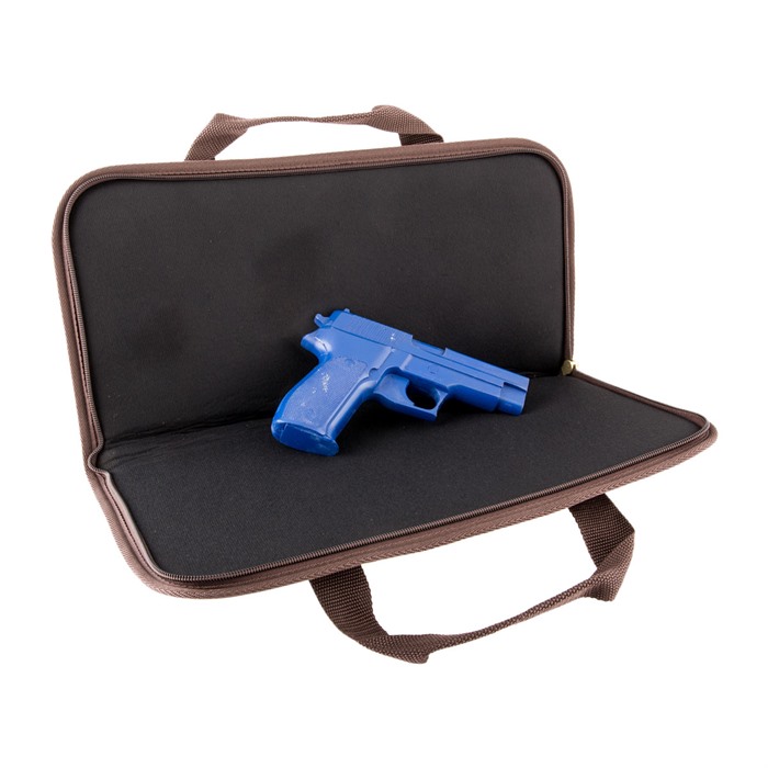 Use as a stand-alone case or for extra protection when carrying your handgun in a range bag with other gear. Large enough for guns with optics, lasers, or tactical lights. Triple protection system includes a tough, Cordura nylon outer shell, dual layer of shock-absorbing foam, and nylon Tricot inner lining. Nylon zipper with brass slide and pull keeps the case sealed; a brass D-ring lets you lock the case (padlock not included). Nylon-web carry strap completes the package. Standard is just the right size for small and mid-size pistols and revolvers. Magnum is built extra large to fit those long barreled, large magnum revolvers and pistols. Deluxe Magnum has an external, zippered pocket ideal for storing extra ammunition, cleaning supplies, shooting glasses, hearing protection or other gear.