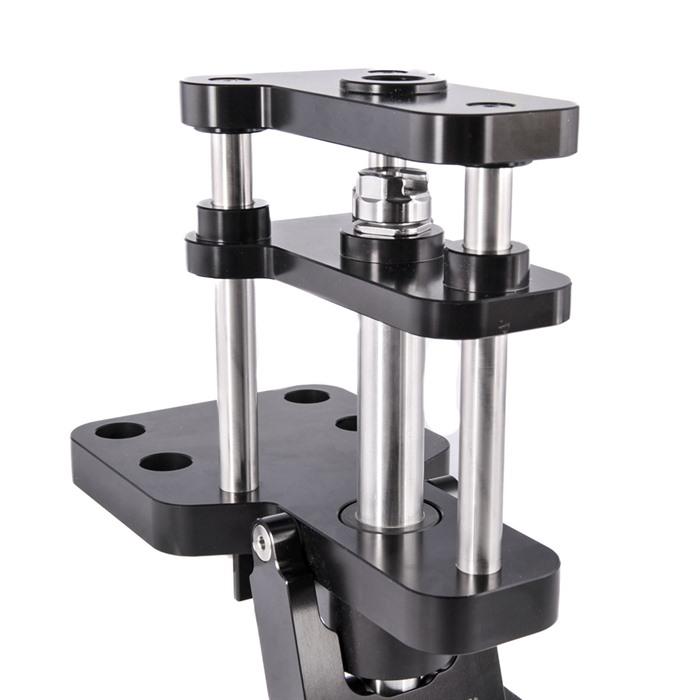 Questa pressa presenta quattro grandi fori di montaggio per un fissaggio sicuro su qualsiasi banco e una raccolta dei primer nella cavità dell'asta della pressa. L'asta della pressa è guidata da cuscinetti lineari per un'azione fluida durante la dimensionatura e l'inserimento. La pressa è compatibile con la maggior parte dei shellholder standard e funziona con i più comuni marchi di dies da 7/8".