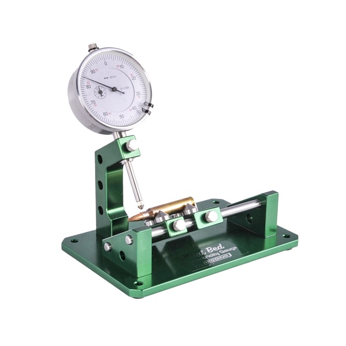 Il design "Slant Bed" sposta la superficie di supporto verso il basso e lontano dall'utente, rendendo la rotazione del bossolo più facile e precisa. La regolazione lineare per diverse lunghezze di cartuccia è semplificata grazie agli slider montati su guide in acciaio inossidabile.